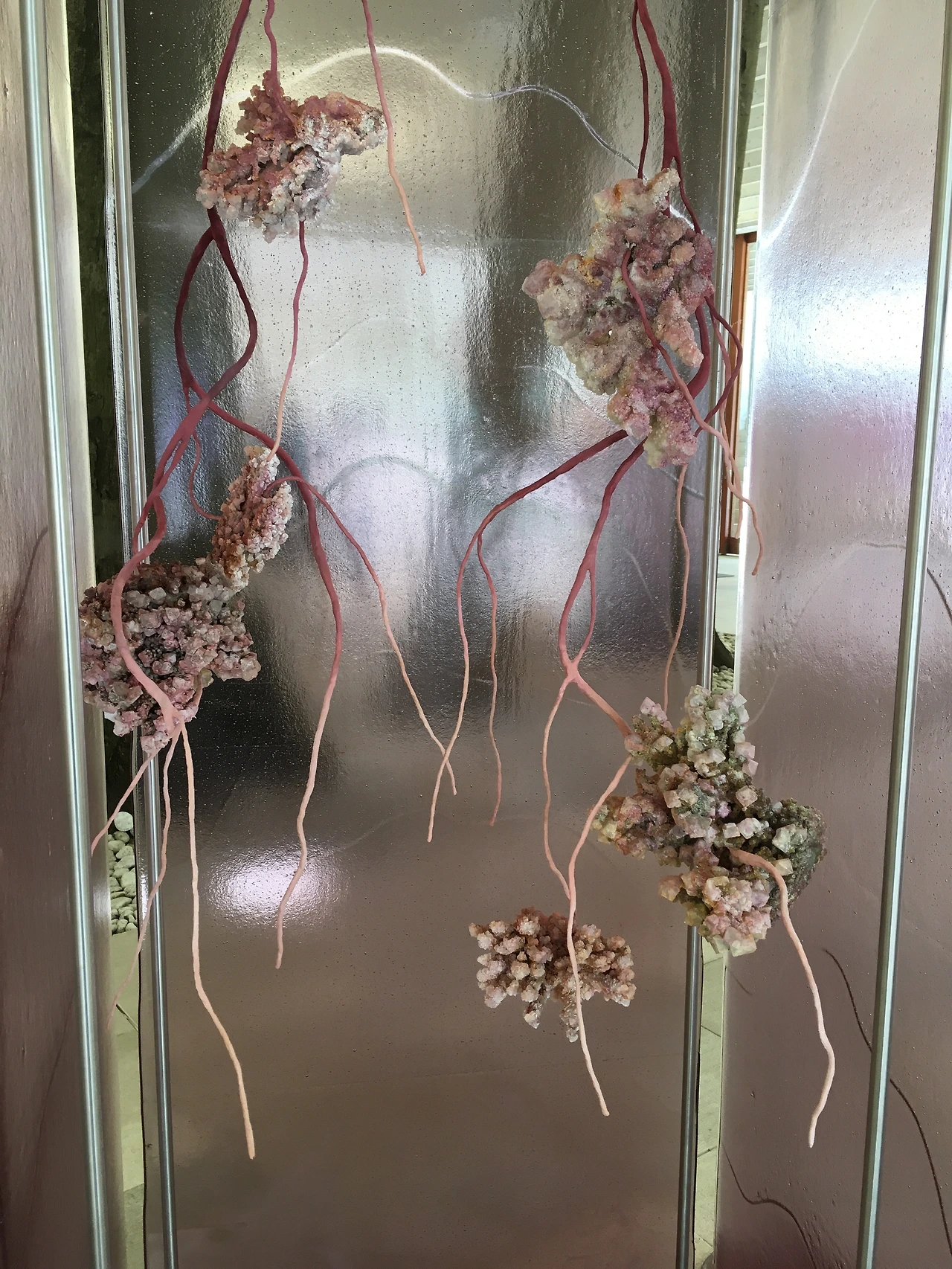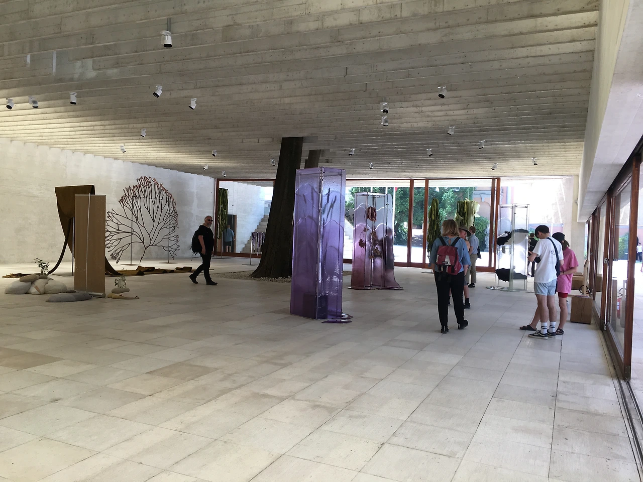 이곳의 전시는 특히나 작품 배열에 있어서 너무나 아름다웠다. 유기적인 식물의 배열, 우리의 본질인 크리스탈의 형상들, 그리고 많은 것들이 연결되어 있다는 비유적인 배열, 나무 껍데기를 묘사하여 유리에 끼워 넣은 작업, 사방으로 줄기를 내린 생명의 나무, 그리고 전시장 중간에 있는 실제의 나무와 해조류의 형상을 띤 설치 작품. 토지 밑에 은은하게 빛나는 청록빛깔. live, love.