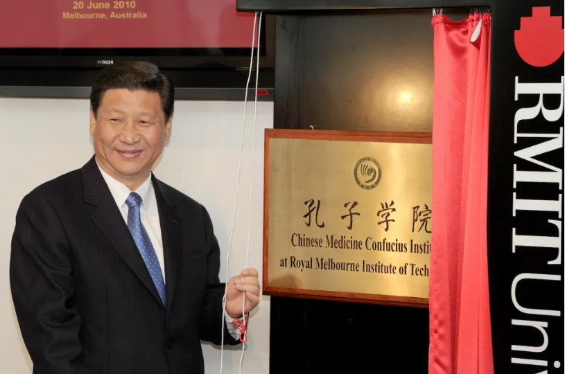 호주 멜버른의 공자학원 중의학학교 개교를 기념하는 시진핑 주석. 유교를 부정하는 한국과 달리 중국은 유교를 적극적으로 긍정한다. WILLIAM WEST/AFP/GETTY IMAGE