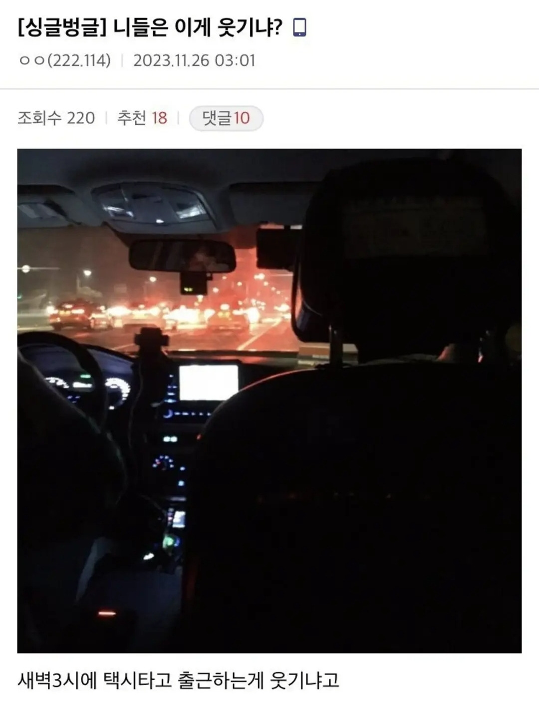 일요일 새벽 3시, 긴급히 출근하는 넥슨 직원이 인터넷 커뮤니티에 게시한 사진.