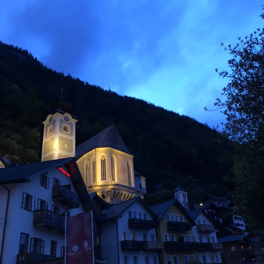 할슈타트는 저녁 7시만 되면 대부분의 가게가 문을 닫습니다. 가게들의 불마저 하나 둘 꺼지면, 그제서야 할슈타트가 가로등도 드문 시골길이라는 사실이 실감납니다. 알프스 산속에 있는 9월의 할슈타트는 꽤 추워서 몸을 녹일 커피 한 잔이 필요했고, 아직 문을 닫지 않은 선착장 근처 호텔 카페로 발길을 옮겼습니다.