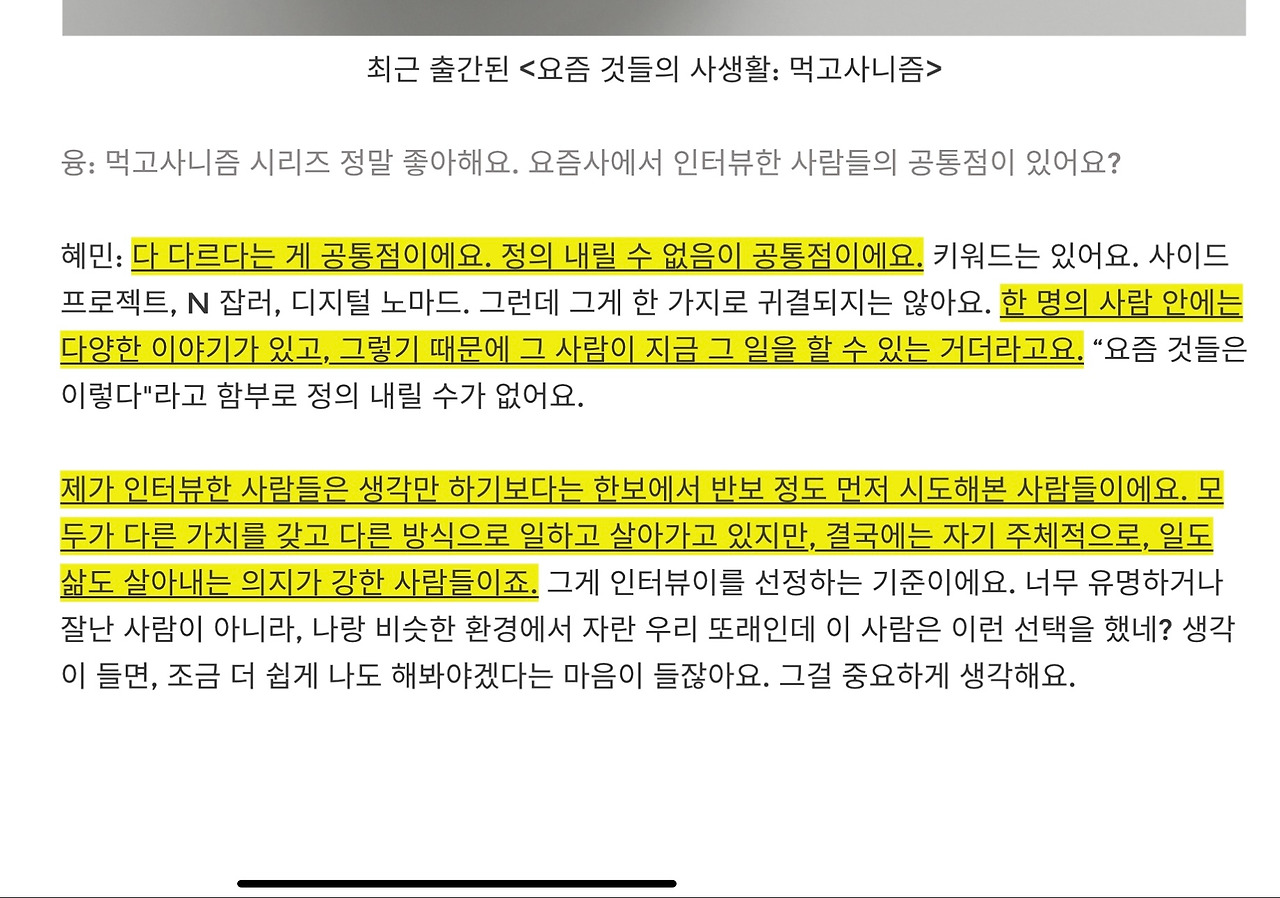 -잡지만 모여있는 책방을 추천받았다. 다음 주에 가볼 생각이다.