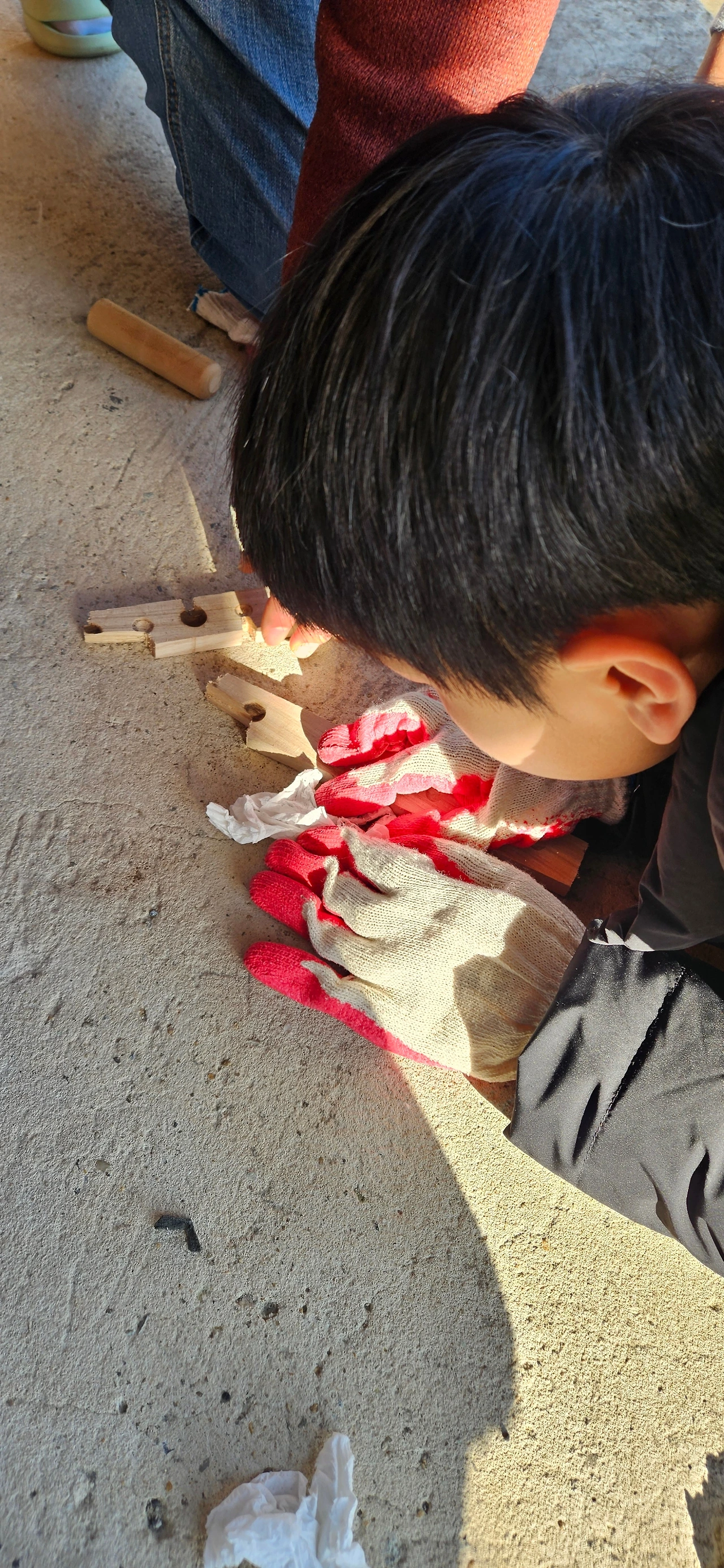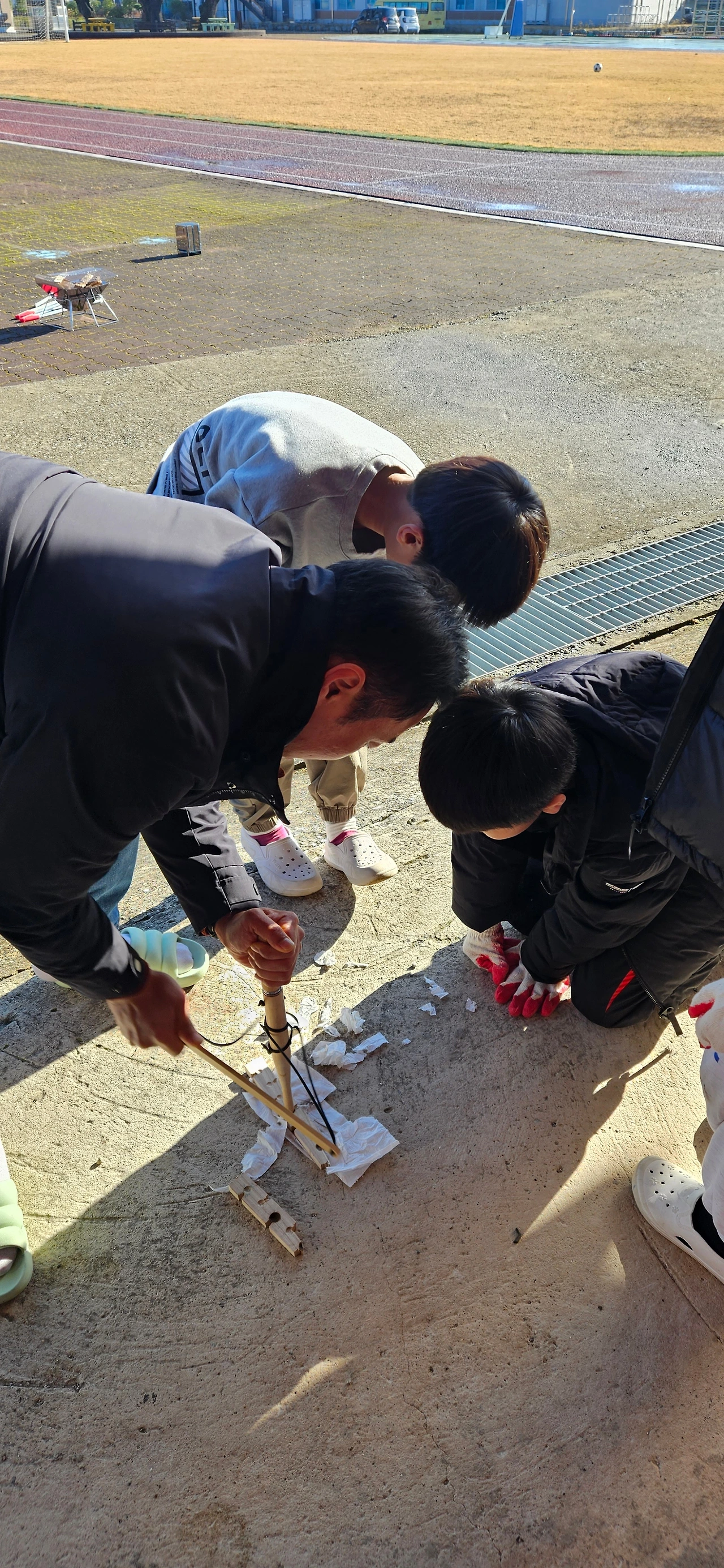 "아빠! 이렇게 막대를 잘 돌려야 해요. 쉬지 않고요." 힘이 중요한 건지, 요령이 중요한 건지, 인내심이 중요한 건지... 쉬지 않고 아이들과 나무 막대를 비비던 남편은 처음에는 의욕이 앞선 듯했지만 시간이 지남에 따라 지친 기색이 역력했다.
