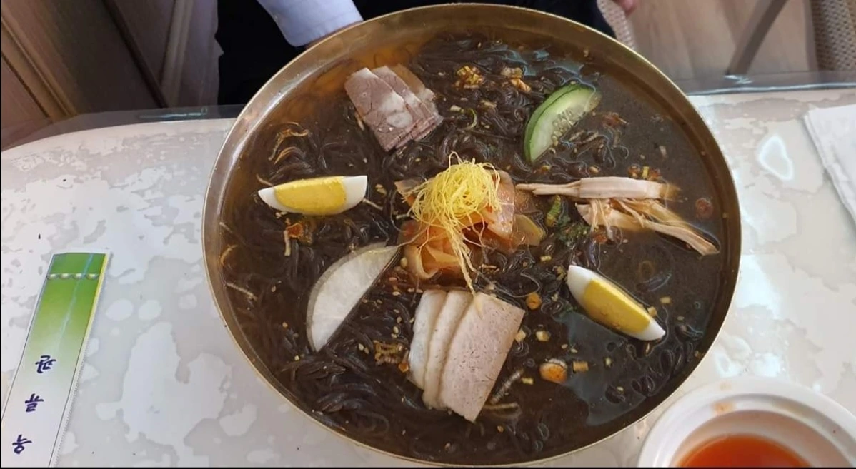 점심은 평양냉면으로 유명한 옥류관에 갔는데 그 규모에 먼저 놀랐다. 한국전통 기와집 양식으로 건축된 왕궁 같은 거대한 건물이었는데 2층으로 되어있고 본관과 별관에 2,200명이 동시에 식사할 수 있는 엄청난 곳이었다. 점심만 영업하고 메뉴는 냉면뿐이다. 국물맛이 특히 맛있다는 옥류관 냉면을 먹었는데 냉면뿐 아니라 함께시킨 녹두전과 쉬움 떡(증편)도 별미였고 옥류관 물김치는 내가 맛본 최고의 김치맛이었다.