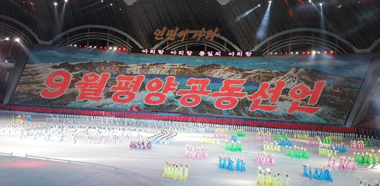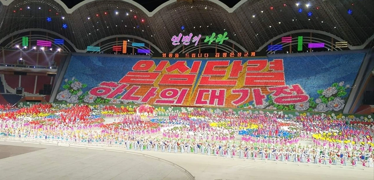 이번 북한여행의 마지막 밤은 북한의 유명한 집단공연인 '인민의 나라'를 15만 명을 수용할 수 있는 5.1 경기장에 가서 관람했는데 집단체조와 공연예술의 규모에 입이 벌어졌다. 카드로 배경을 만드는 인간 스크린에 앉아있는 사람만 1만 7천 명이 넘는 엄청난 규모였는데 각종 선전문구와 함께 여러 주제로 구성된 90분간의 숨 가쁜 공연이었다.