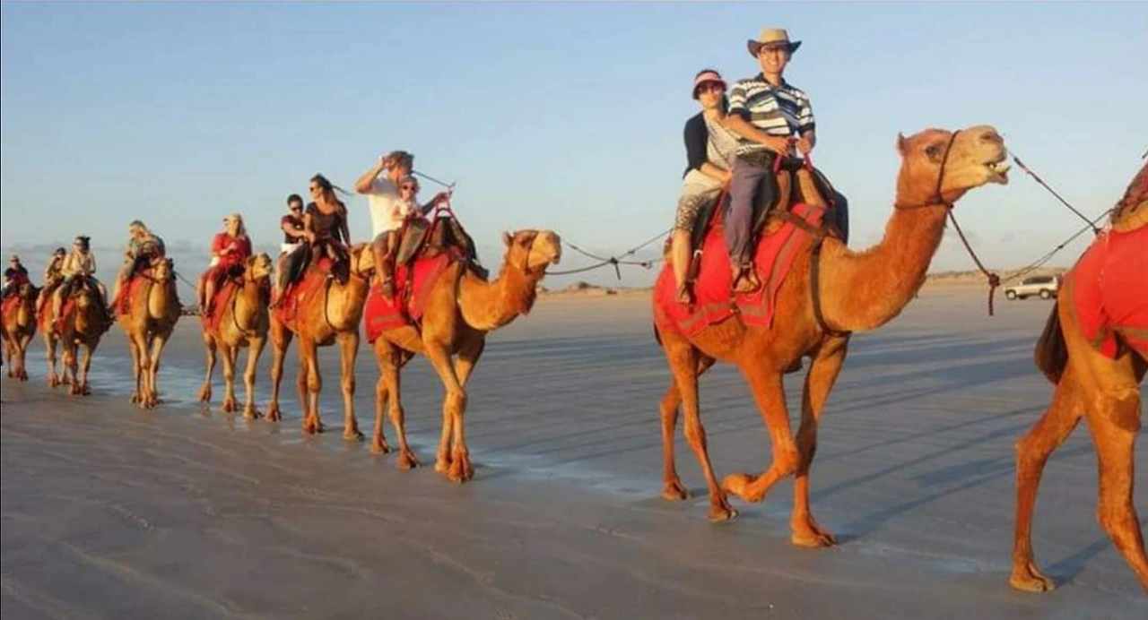 브룸은 아름다운 관광도시로 호주에서 두 번째로 아름다운 해변으로 선정된 케이블 비치가 있는데 이곳에서 1시간 동안 낙타를 타고 석양바다를 감상하는 유명한 관광 코스가 있다. (예약이 밀려있으니 꼭 미리 예약해야 탈 수 있다. Sunset camel riding on Cable beach in Broome, WA). 브룸에 가면 꼭 선셋 캐멀 라이딩 체험해 보길 추천한다. 인생경험으로 오랫동안 기억되는 아름다운 체험이 될 것이다. 우리도 1시간 동안 낙타를 타느라 엉덩이가 좀 아팠지만 돌아오는 길에 낙타 위에서 감상하는 석양은 참으로 황홀했다. 또 석양에 물이 많이 빠져 넓게 드러난 길고 넓은 해변을 내 4WD 차로 맘껏 자유롭게 운전해 보는 멋진 경험도 했다.