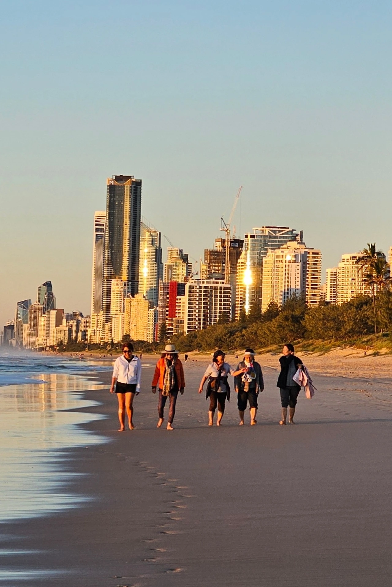 떠오르는 아침햇살에 반사되어 황금빛으로 반짝이는 골드코스트의 화려한 고층 건물들을 배경으로 다섯 명의 여인들이 맨발로 당당하게 해변을 걸어가고 있는 모습이 흡사 황금 도시를 정복하고 나온 맨발의 여전사들처럼 위풍당당하게 보여 나 또한 이 모든 것이 감사해 저절로 행복한 미소가 입가에 피어났다.