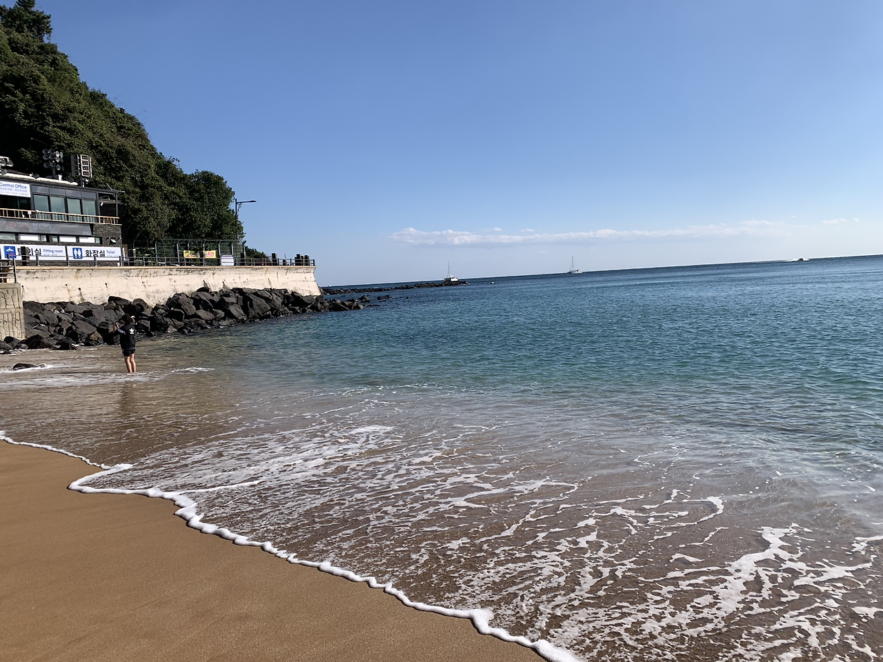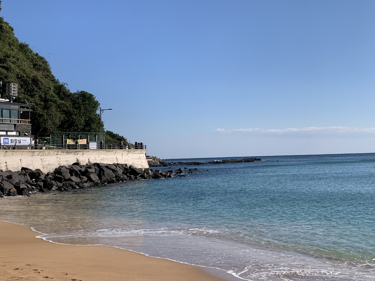 중문색달해변은 바람이 많이 불어 추웠지만, 11월의 바다만큼 푸르르고 맑았다.