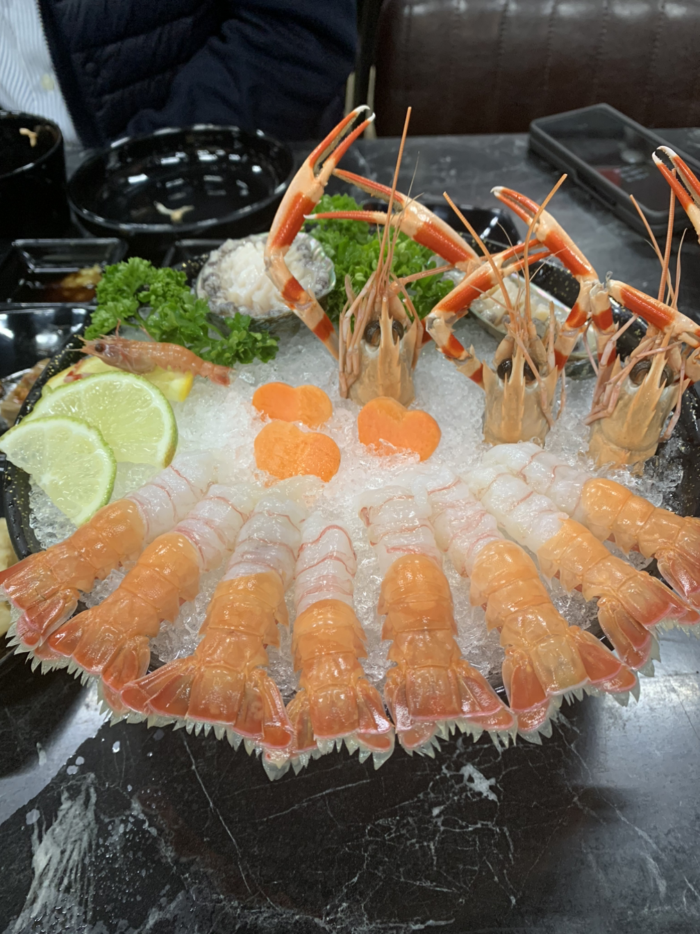 딱새우 회는 제주에 가면 한번은 꼭 먹어야 하는 명물 회다. 달달한 새우살 맛이 일품인데, 이날따라 아기 딱새우가 같이 잡혀서 데코레이션으로 올려주셨다고 한다.