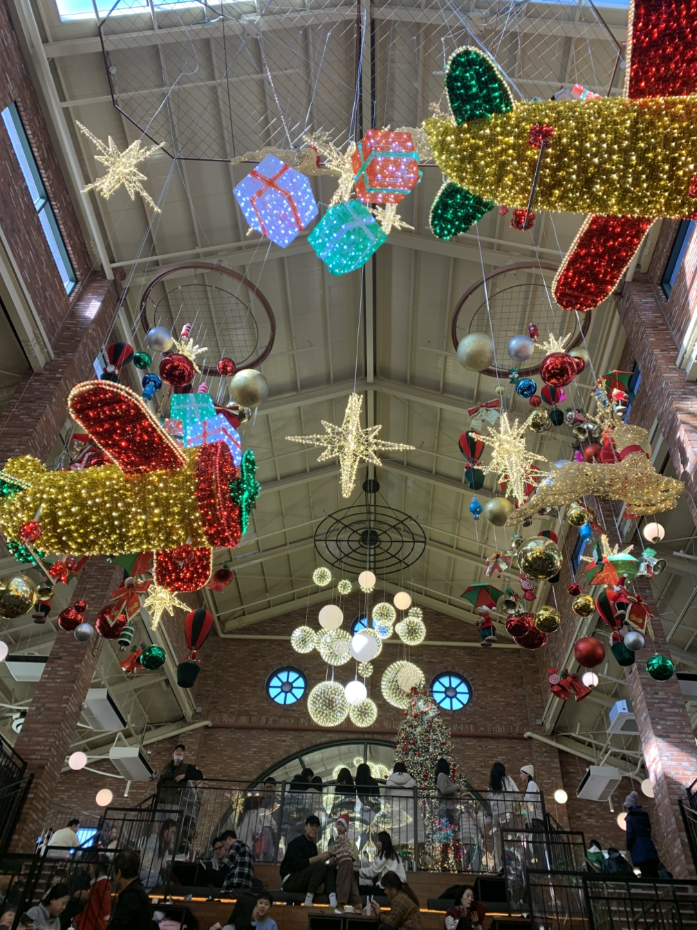 요즘 대형카페는 거진 디자인이 70 커피맛이 30 혹은 그보다 더한 비율인 경우가 많은지라, 이 포레스트 아웃팅스라는 카페 역시 힘을 많이 줬다. 크리스마스를 느낄 수 있는 거대한 데코레이션이 나와 아이의 마음을 사로잡았다.
