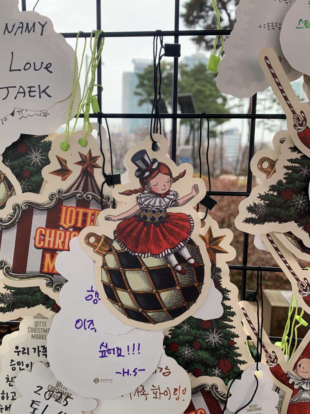 최근 서울에도 크리스마스 마켓이 많이 생기고 있다. 롯데타워 근처 크리스마스 마켓에서 아이 크리스마스 선물을 샀는데, 여긴 평일 오전 시간에 가야 사람이 붐비지 않는다. 현장 입장료도 2천원이면 구매 가능하다.