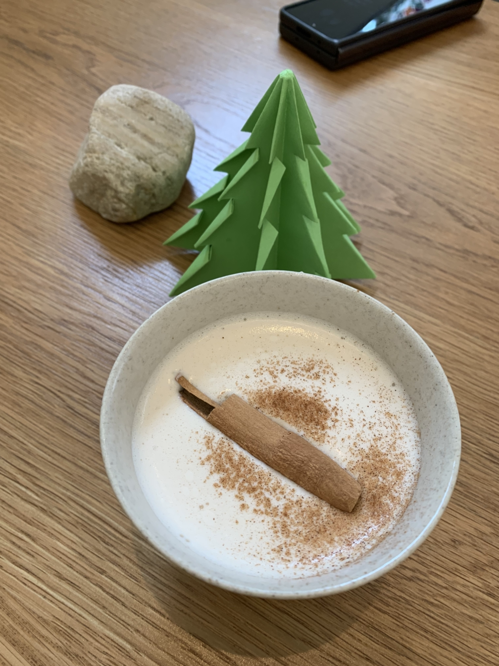 시나몬이 들어간 사과 밀크티 였던가. 기억이 가물하지만 이런 크리스마스 느낌이 물씬 나는 음료를 먹으니 남편과 아이의 향후 교육 방향에 대해 심도깊은 얘기를 나누게 되었다. (어린이집, 놀이학교, 영어 유치원.. 이 얘기는 기회가 된다면 다른 브런치북에서 다루고 싶다.)