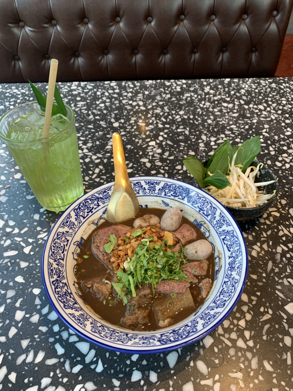 하기 국수는 직원이 추천한 스페셜티 국수라고 해서 먹어봤는데, australian wagu 슬라이스, fish ball, 그리고 고수와 숙주를 넣어서 먹었고 나는 매운맛을 좋아하지는 않아서 매운맛없이, egg noodle로 먹어봤는데 맛있었다. 왼쪽에 시킨 판단 주스와도 잘 어울렸다.