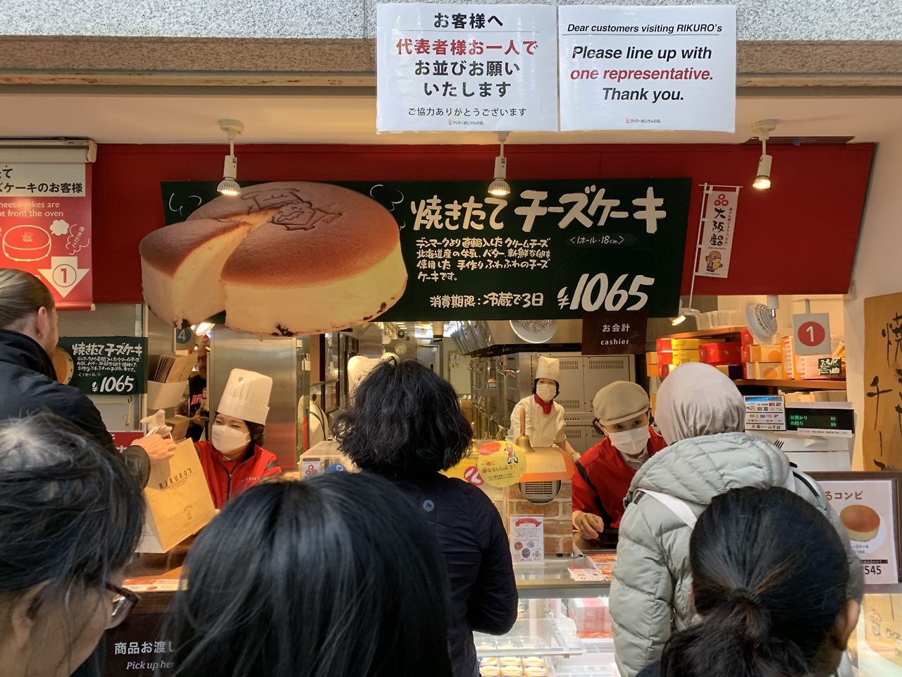 이 치즈케이크 집 정말 맛있었다. 이름이 "리쿠로오지상 케이크"라고 하는데, 이른 아침부터 줄이 정말 길게 서 있었고, 케이크가 나올 때마다 흥겹게 종을 울리는 퍼포먼스를 해 주어서 기대감을 불러일으켰다. 갓 나온 치즈케이크를 먹었는데, 너무 달지도 않고 정말 폭신폭신한 수플레를 먹는 느낌이어서 난 개인적으로 좋았다.