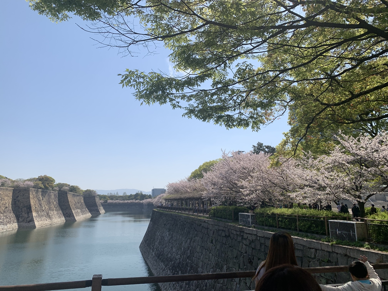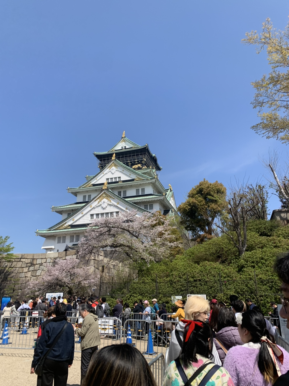[2일 차] 오사카 성으로 먼저 향했다. 4월 12일 기준으로 벚꽃이 정말 흐드러지게 피어 있어 길이 너무 예뻤다. '고자부네' 놀잇배를 아침에 예약하고 약 20분 정도 투어를 했다. 오사카 성에서 나와 근처에서 오므라이스/볶음밥을 먹고 (Micky Cafe) "하루카 300" 전망대에서 전망을 구경했다. 이후 오사카의 트레이드마크인 "글리코상"을 보고 근처 도톤보리 시장 등을 다니면서 거리 구경을 했다. 출출할 때는 타코야키도 먹어가면서. 근처에서 저녁을 먹은 뒤 "도톤보리 리버 크루즈"를 타고 호텔로 돌아왔다.