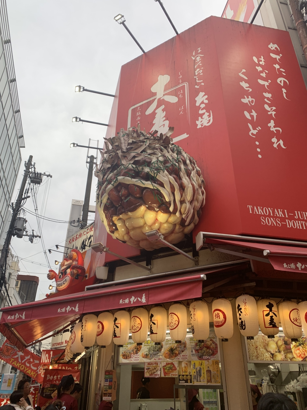 여기는 '타코야키 쥬하치방 도톤보리점'. 오사카는 타코야키가 참 유명한데 여기는 일부다. 내가 먹은 타코야키도 나름의 매력이 있었다. 줄은 어딜 가나 맛집은 길다. 그래도 금방 빠지고, half and half 8개 타코야키 기준으로 약 800엔 정도 내면 갓 나온 타코야키를 먹을 수 있다.