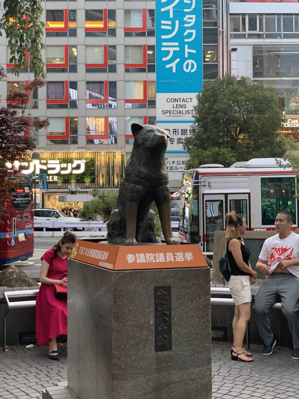 크로싱 바로 옆에 하치코 동상이 있다. 주인이 죽고 나서도 시부야 역 근처에서 매일 주인을 기다렸던 충견의 이야기가 사람들의 마음을 울려서 동상을 만들어놨다는 뭉클한 이야기이다. 사람들이 같이 사진을 찍기 위해 줄지어 기다리고 있어서 나는 하치코만 사진에 담아 왔다.