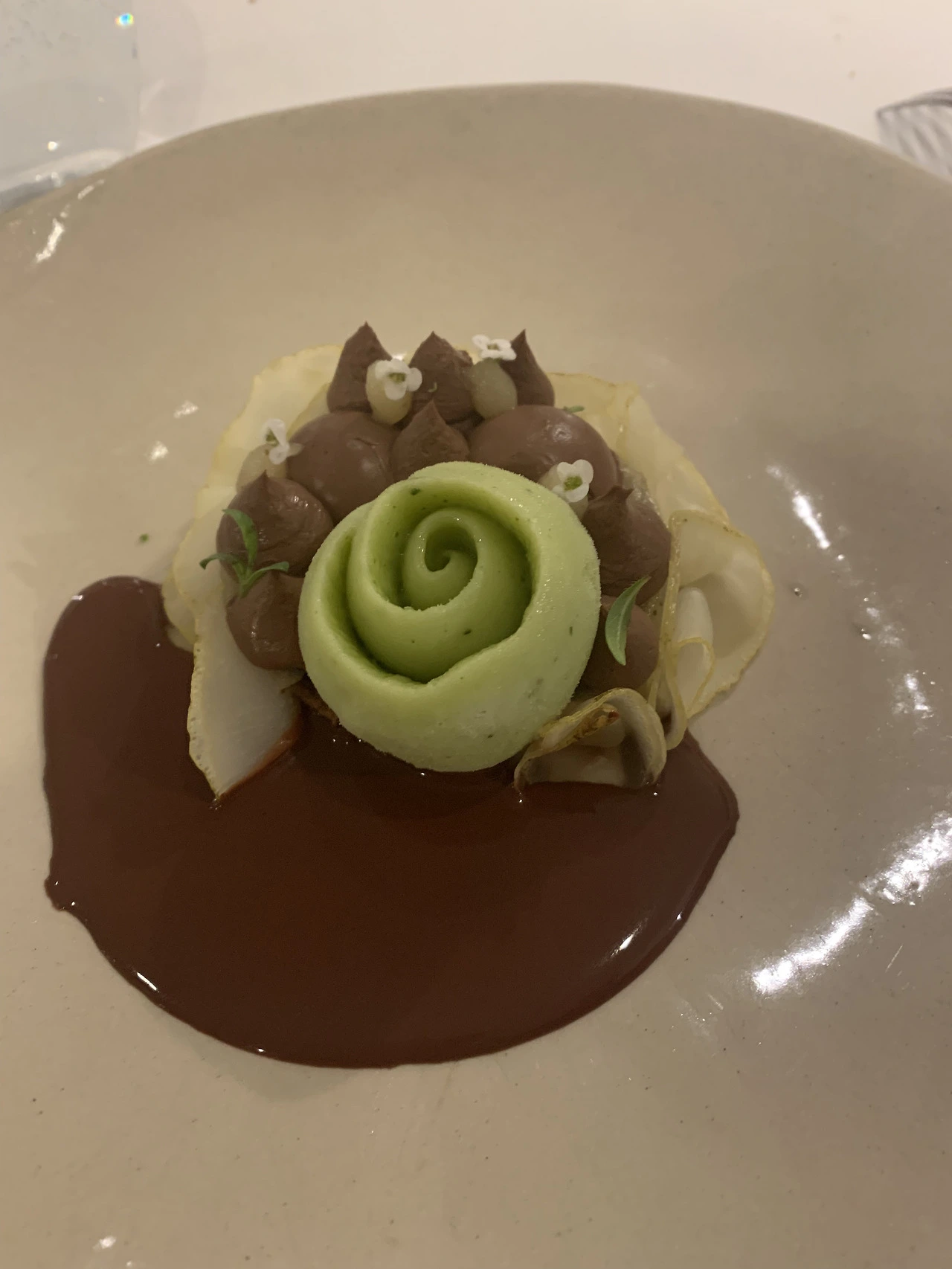 • Kiwi & Chocolate Dessert: 장미꽃 모양으로 피어난 키위 샤벳과 진한 초콜릿 가나슈의 만남. 시각적인 즐거움이 미각으로 이어지는 완벽한 피날레였다.