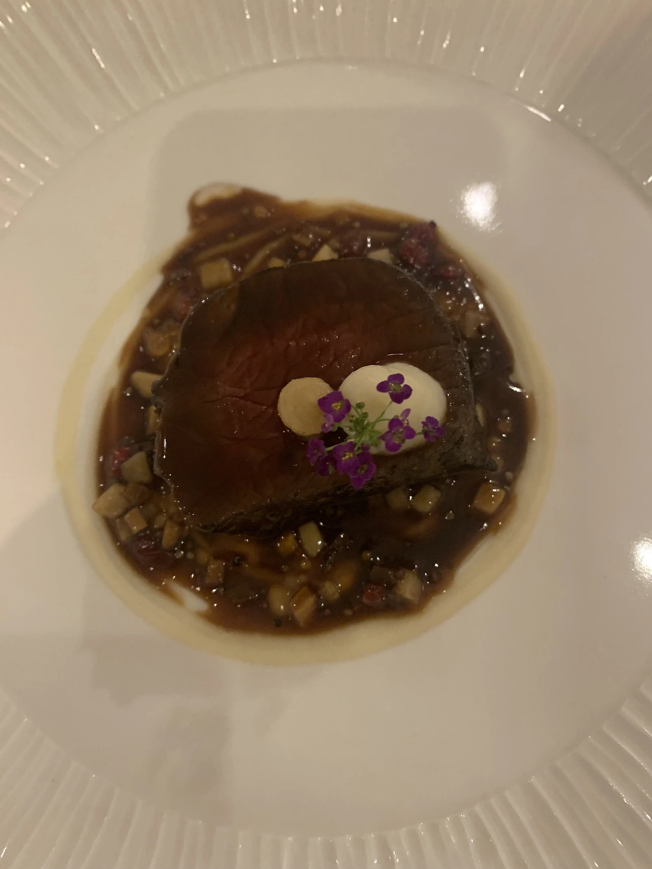 • The Main: 완벽한 굽기의 스테이크 위에 살포시 올라간 보라색 꽃 한 송이. 진한 소스와 가니쉬의 밸런스는 입안에서 완벽한 서사를 써 내려갔다.