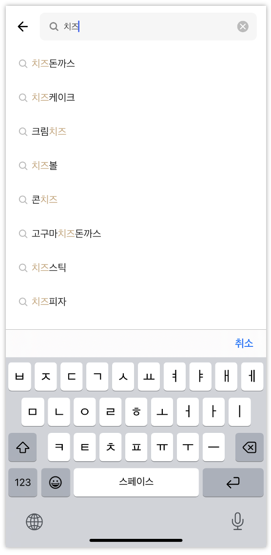 상기 캡쳐본과 같이 '치즈'만 쳤을 뿐인데 어떤 음식을 원하는지 목록이 주르륵 나오죠!