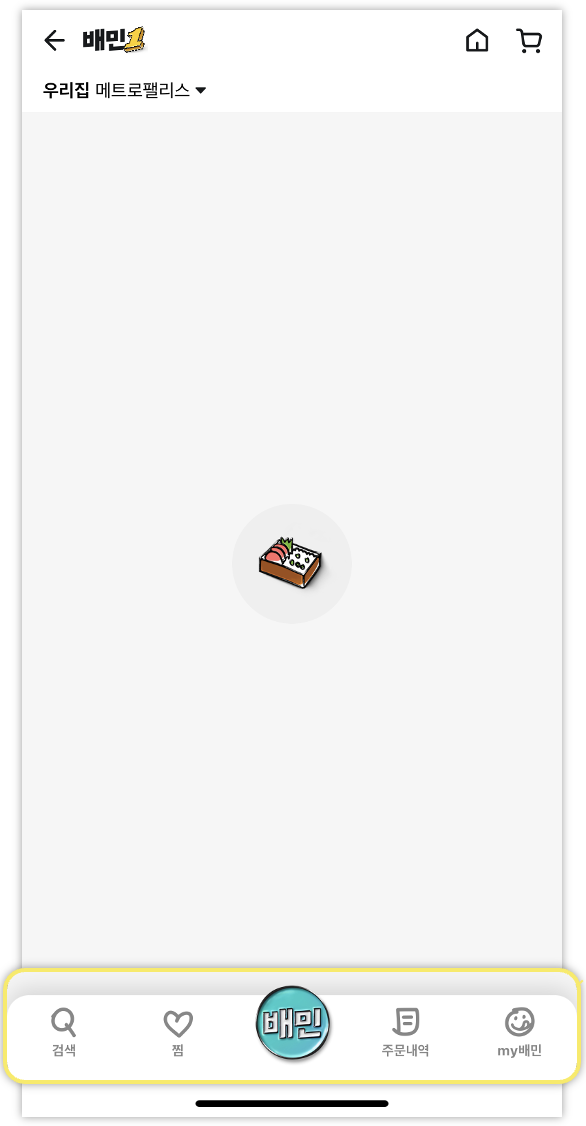 검색 메뉴와 my배민 메뉴 역시 사용자가 주로 사용하는 메뉴이기 때문에 쉽게 찾을 수 있는 가장 왼쪽과 오른쪽에 위치하고 있어요.