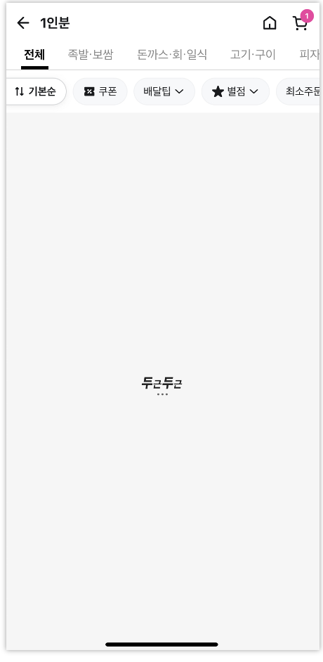 기존에는 로딩화면에서 음식 아이콘들이 빠르게 돌아가고 있었으나 현재는 '두근두근'이라는 이라는 글자가 두근대는 인터랙션과 함께 노출돼요.