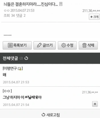 늬들은 결혼하지마라. 왜. 그냥 --