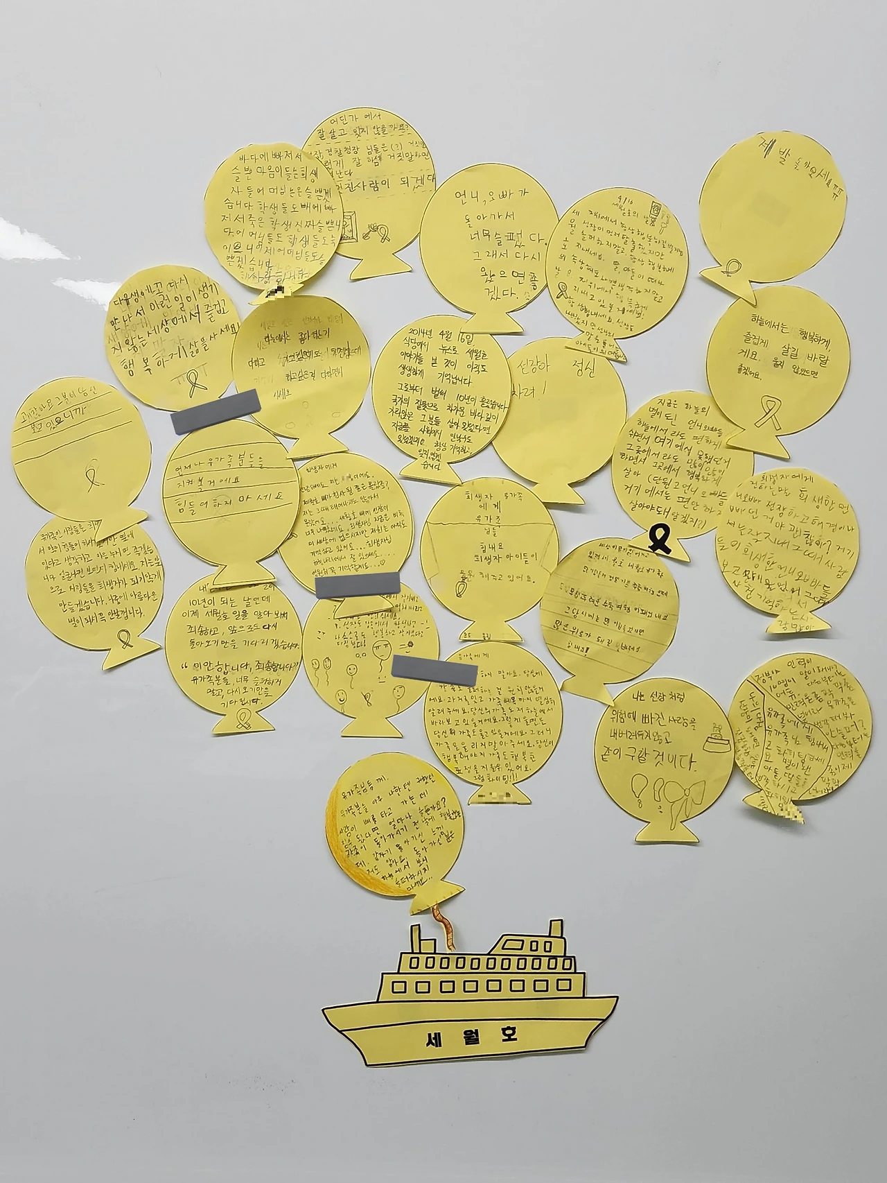 내가 할 수 있는 일은 그날을 잊지 않는 것이었다. 교사가 된 후 매년 4월 16일이면 세월호에 대해 아이들과 이야기를 나눴다. 수업을 준비하며 혼자 영상을 보다 눈물을 흘리기도, 당시 정부의 거짓말을 설명하다 가슴이 답답해지기도 했다. '오늘은 무슨 날일까요?'라는 질문으로 시작되는 수업. 수업은 '화요일이요', '누구누구의 생일이요' 같은 가벼운 대답으로 시작되지만, 수업이 끝날 때쯤이면 아이들의 눈에는 슬픔과 분노가 서린다. 수업은 늘 노란 리본 만들기 활동으로 마무리한다. 나는 아이들에게 수업을 들으며 느낀 점, 세상에 하고 싶은 말, 나의 다짐을 자유롭게 써보라고 한다. 길게 적어야 한다는 교사의 잔소리 없이도 아이들은 진심으로 한 자 한 자 편지를 쓴다.