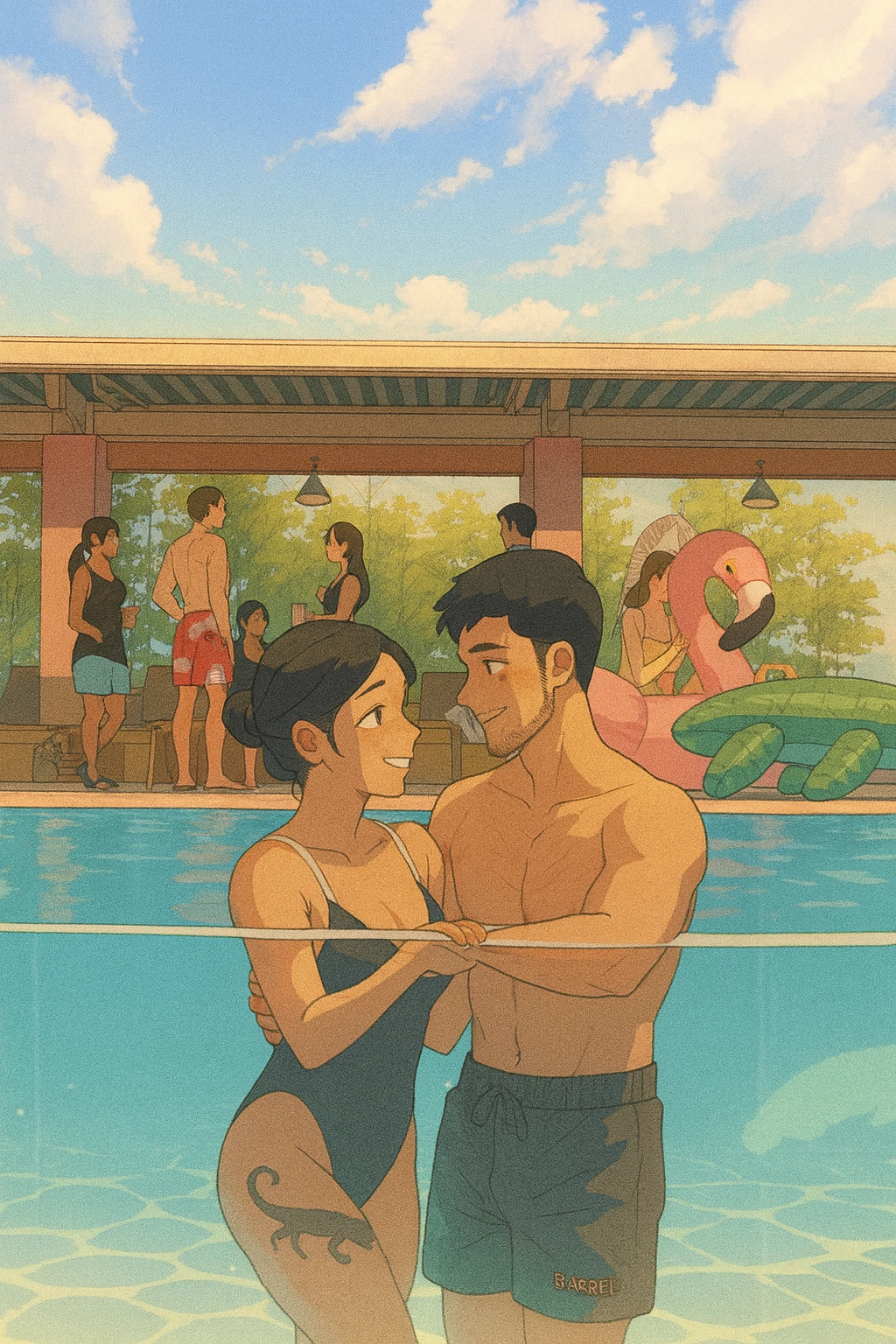 한 달 전, 그녀를 처음 만난 공간. 이제는 그 공간에서 데이트를 하고 있다는 사실이 새로우면서 낭만적으로 느껴졌다. 날은 여전히 흐렸지만, 비는 오지 않았고, 검은색 모노키니를 입은 그녀는 한 달 전 비키니를 입고 있었을 때처럼 여전히 눈부시게 아름답고 섹시했다.