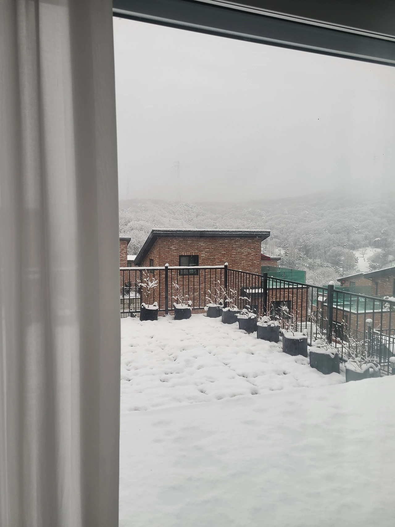 오전 8시 눈을 뜨자, 온통 새 하얀 풍경을 마주했다.