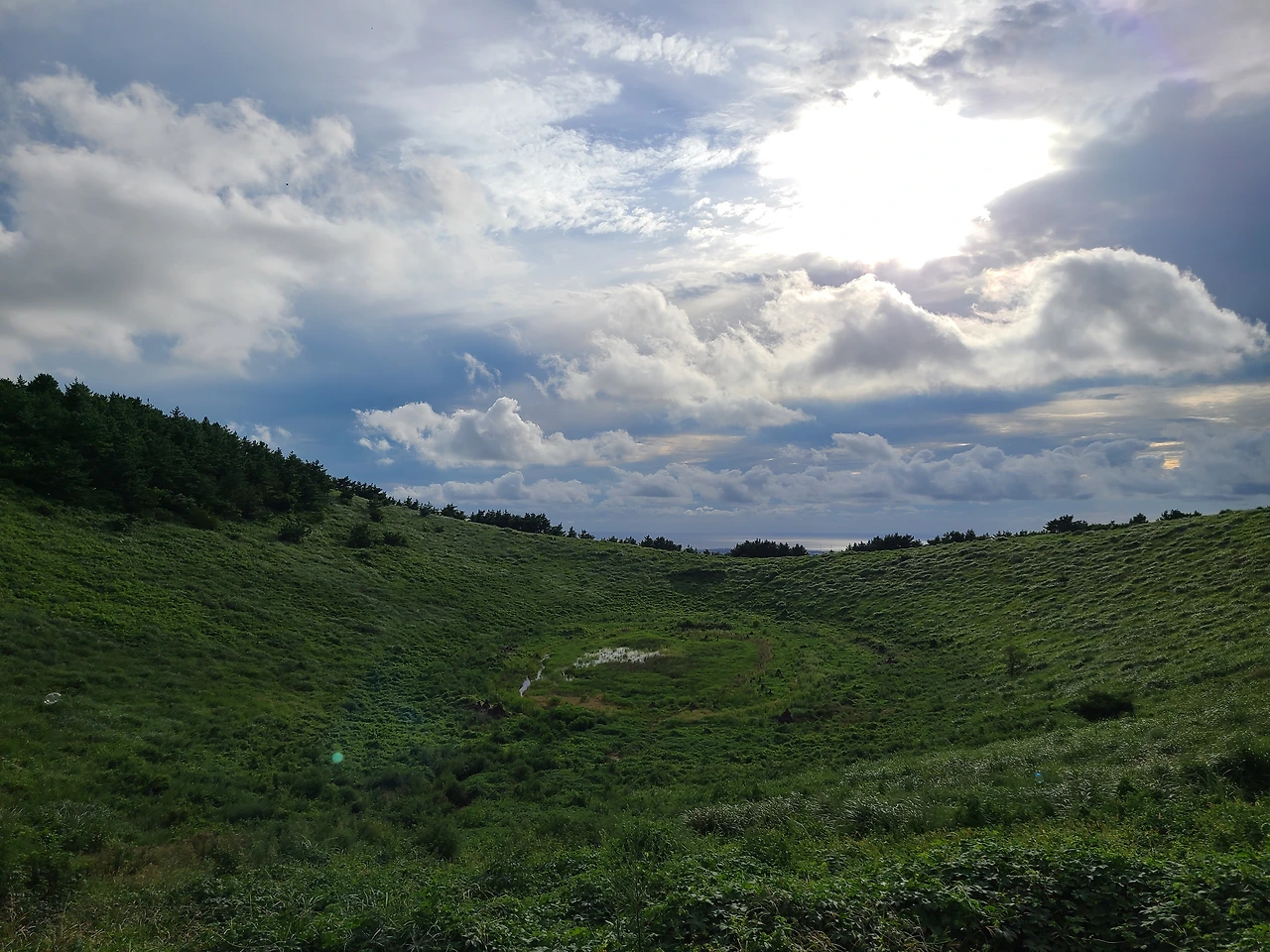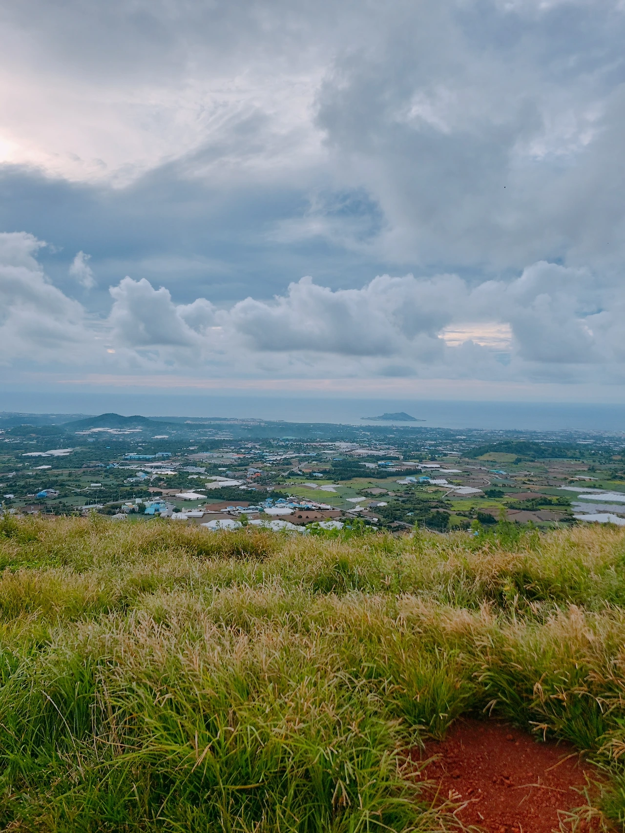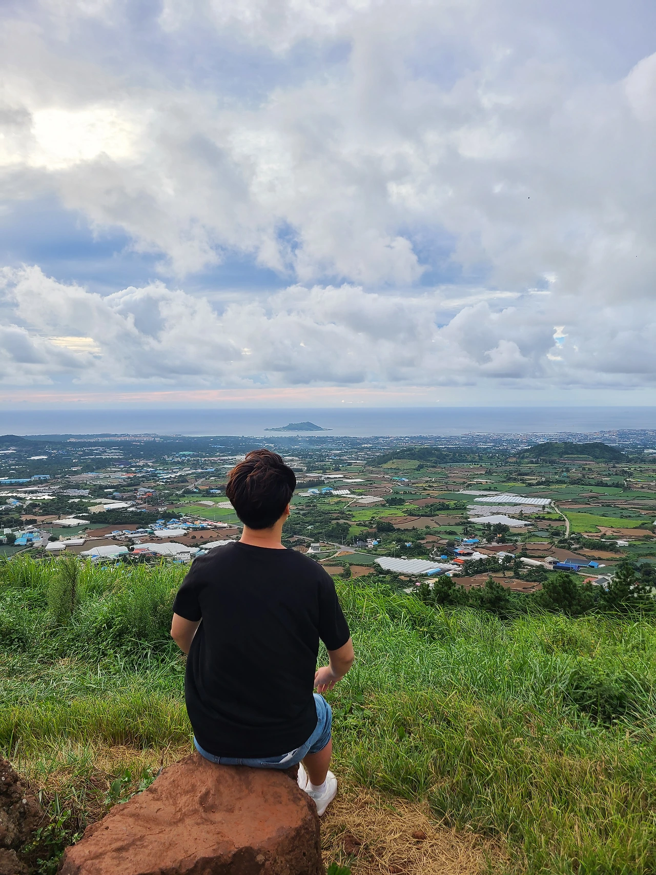 한 바퀴 오름을 다 구경하고, 해가 지기 시작하는데 저 멀리 구름이 많아서 해지는 풍경을 보기 힘들다고 판단했다. 산이 어두워지기 전에 내려가자고 했다.