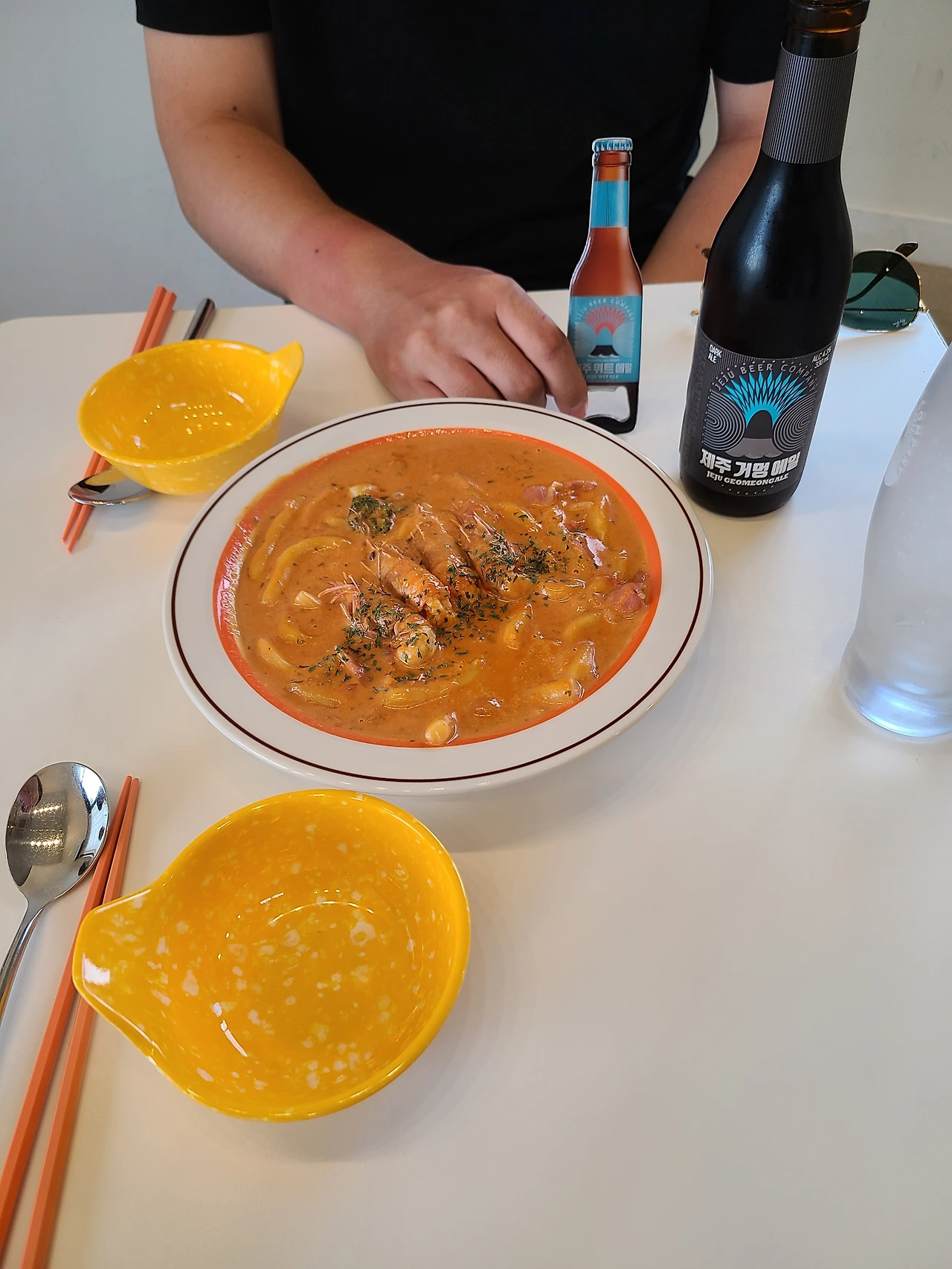 로제 떡볶이와 제주거멍에일을 시켰다. 로제 떡볶이가 생각보다 너무 맛있어서 국물까지 모두 흡입했다.