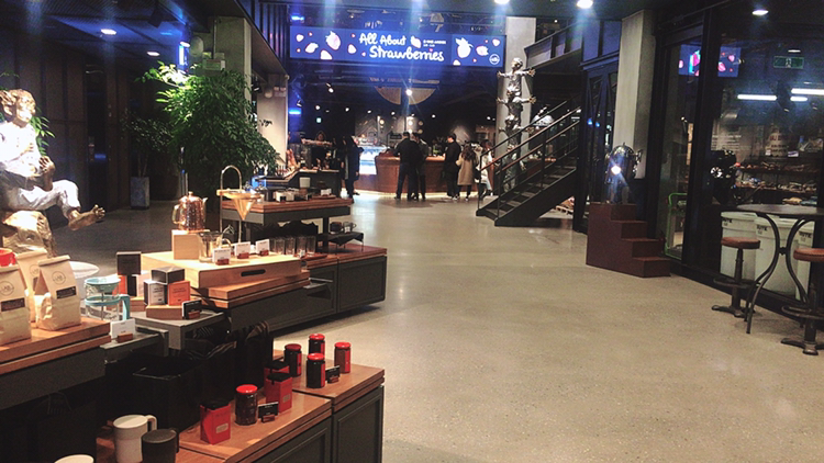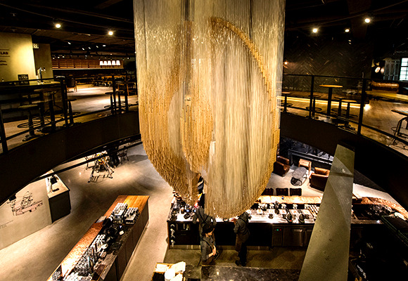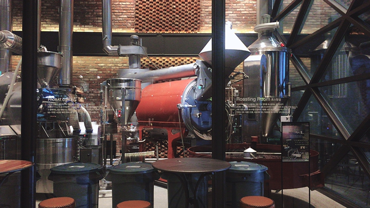 호텔 로비 컨셉인가? 2층으로 뚫린 넓직하고 긴 천정에 샹들리에와 분주하게 움직이는 바리스타들~
