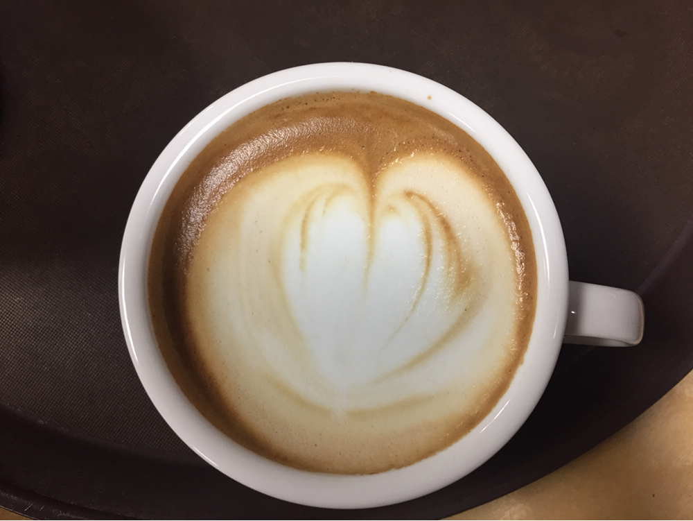 그 다음 어느정도 높이에서 피처 코를 숙이고 부어주고, 에스프레소 샷이 풀어진 다음 낮게 가져가 그림을 그린다. 말은 쉬운데.. 이게 생각보다 어렵다.