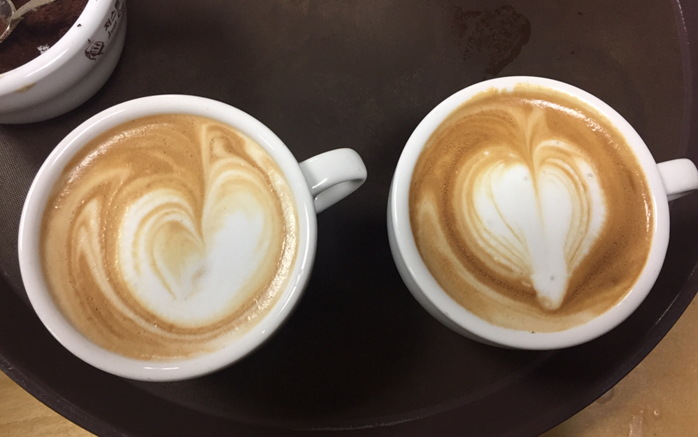 커피를 아무리 잘 내리고 좋은 원두를 사용해서 추출을 잘해도 눈에 보이는 그림으로 바리스타의 실력을 평가받는게 아쉽다. 그치만 기왕이면 추출을 잘 한 만큼 베리에이션 음료도 잘 만들어서 하트정도는 잘 그릴 수 있어야 훌륭한 바리스타가 아닌가!