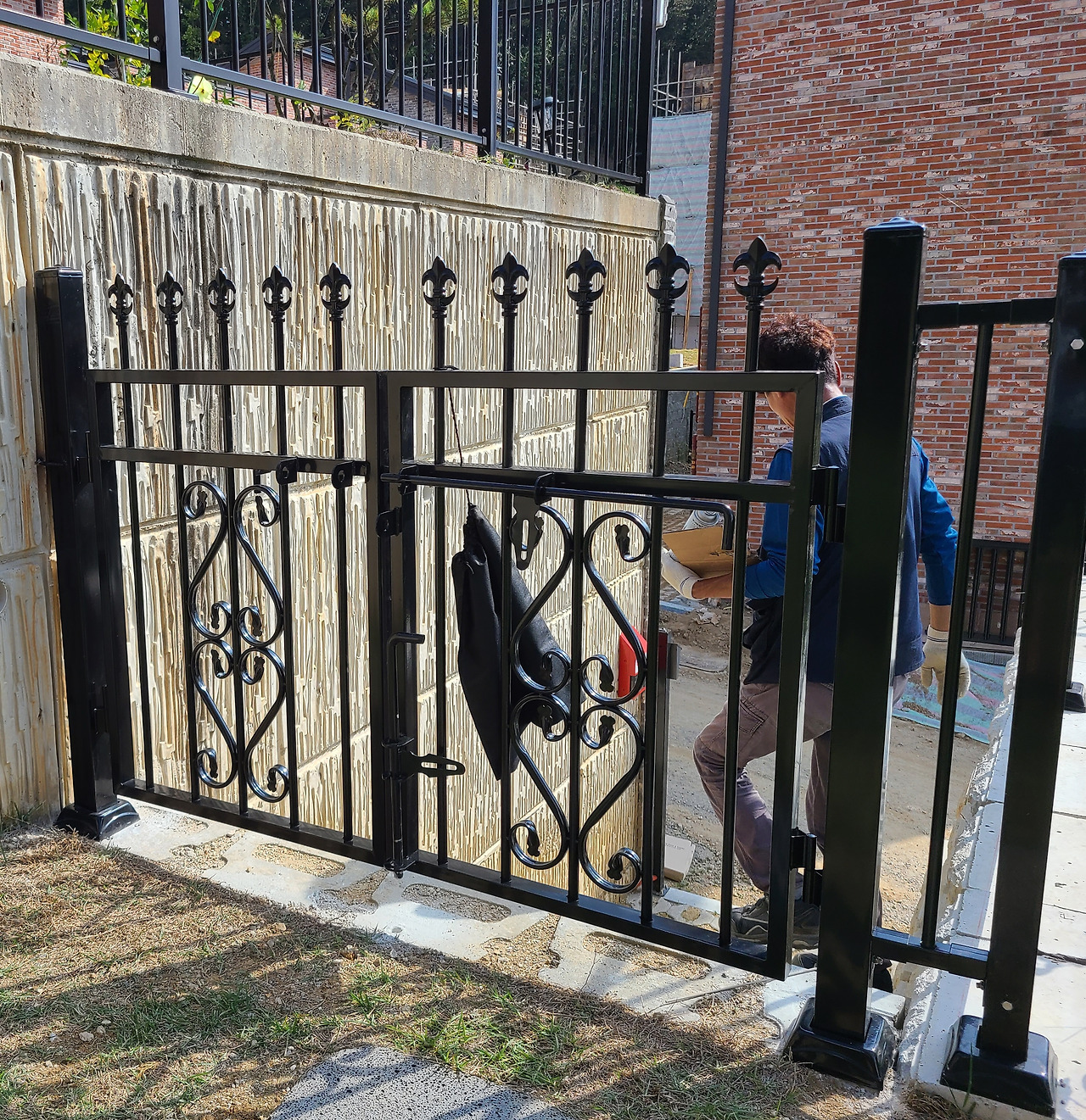 계단 맨 위쪽으로 마당 울타리와 어울리는 디자인으로 달았다. 설치는 하루면 끝나지만 왜 이렇게 비쌀까.