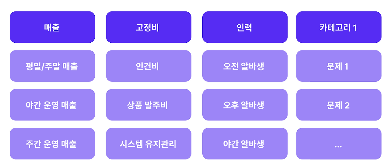 자, 다음으로 문제들을 성격에 따라 분류한다. '매출 증대와 비용 절감'이라는 모순에 직면했다고 가정하자.