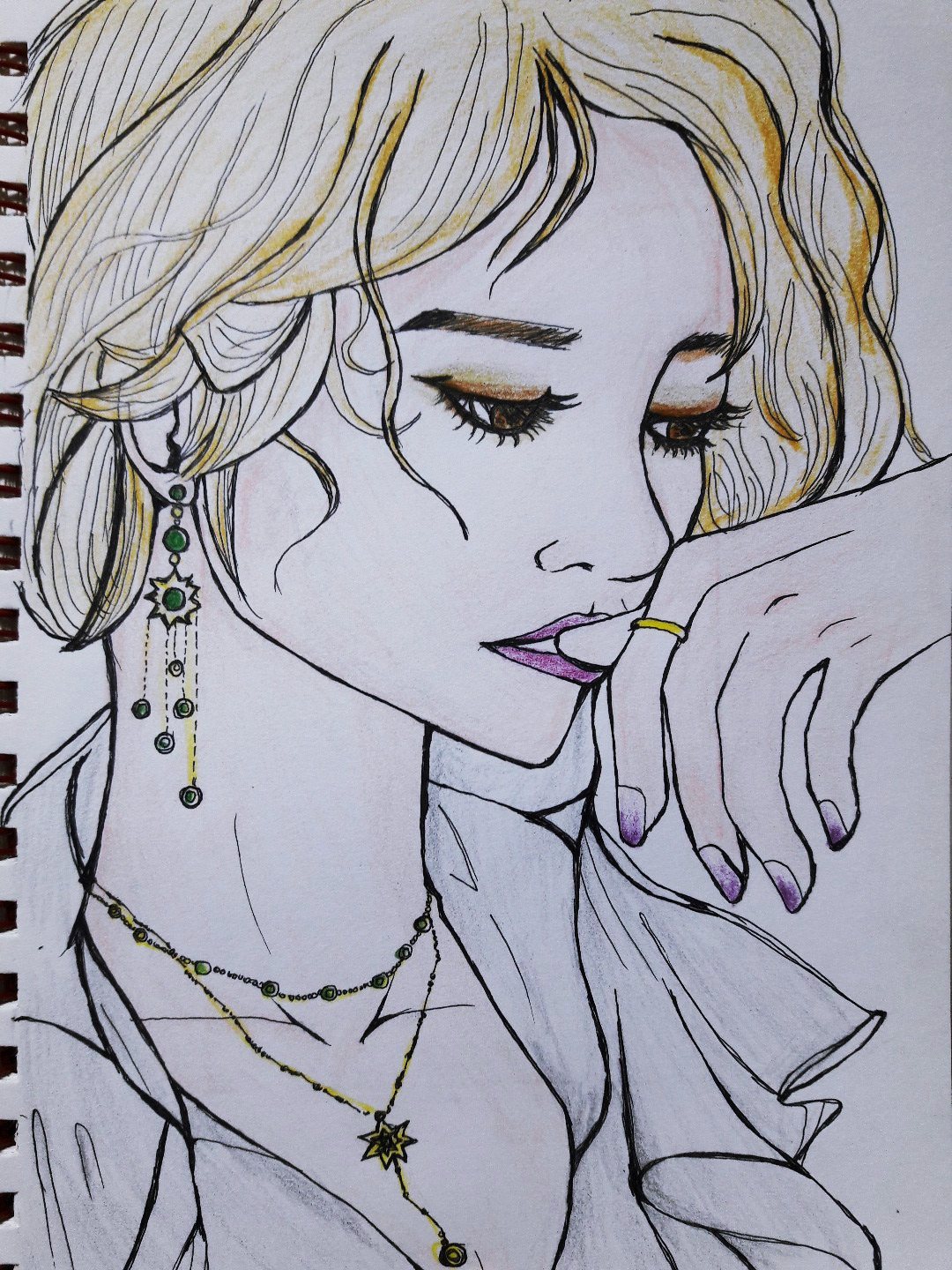 이거 또한 모작인데요~ 똑같이 그리기보단 모델을 두고 저만의 스타일로 바꿨어요. 그래서 분위기만 느낌만 조금 닮은 ...이런 그림이 나왔답니다.