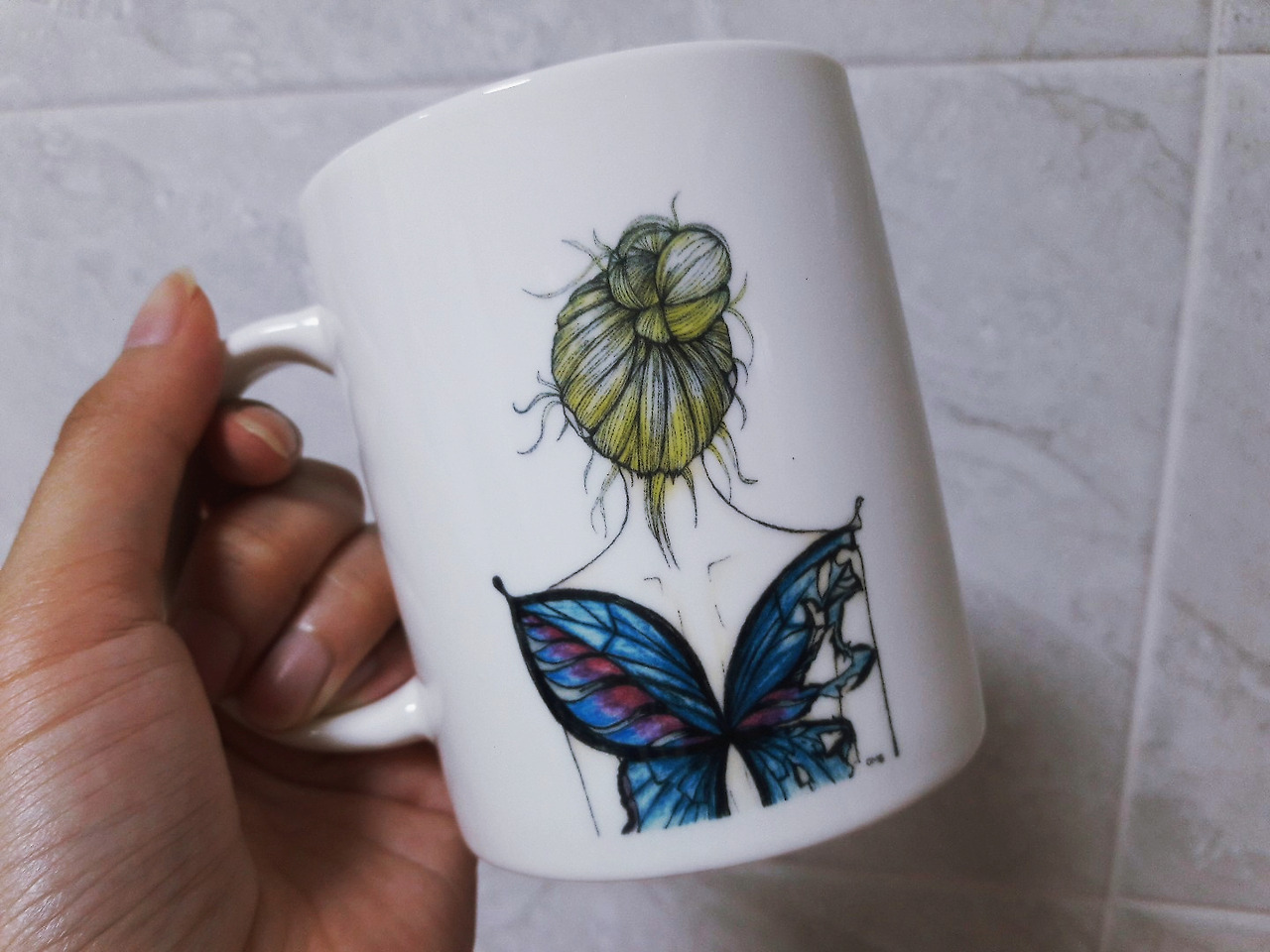 그렇게 취미삼아 그리던 그림을 인스타그램에 올리기 시작하니 머그컵을 취미로 제작하시던 분이 머그컵 디자인으로 쓰고싶다고 연락이 오셨어요. 처음엔 기념품으로 만들었는데....어쩌다보니 초상화를 그리고 그걸로 프린팅해서 세상에 하나뿐인 머그컵을 만들게 됐어요!