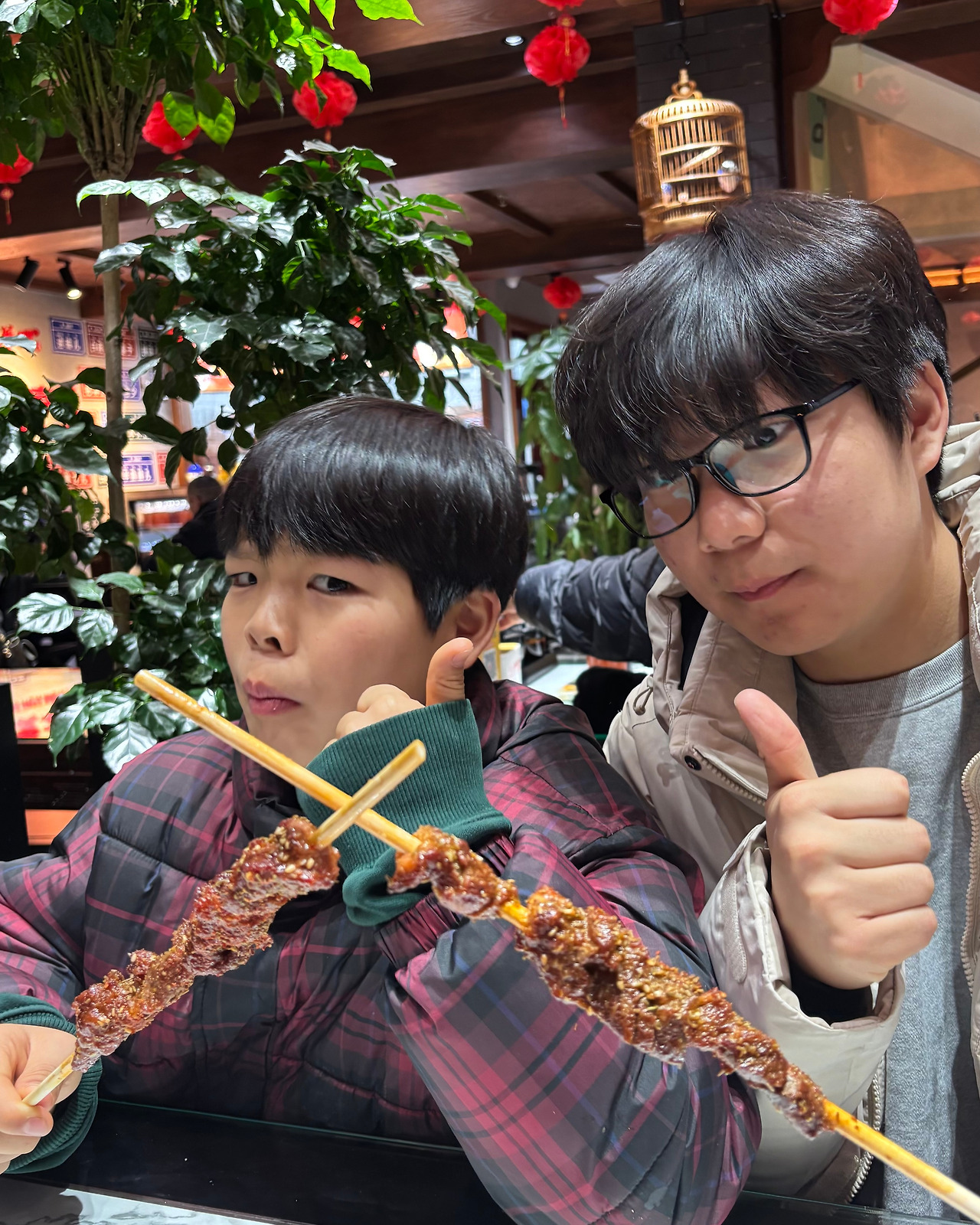 껍질이 살짝 바삭하게 익은 양고기와 돼지고기, 그리고 그 위에 소복이 뿌려진 지독히 자극적인 향신료 범벅이 전하는 환상의 궁합. 시안에서 만난 '꼬치'는 중국 본토 요리에 대한 막연한 두려움을 단박에 날려버렸다. 사실 한국에서도 종종 중국식 꼬치를 즐겨온 우리 가족이다. 그 꼬치가 그 꼬치 같기도 하다. 하지만 고기에서 나는 향, 양념, 굽는 방식까지 분명 업그레이드다. 중국 본토 여행은 처음이 아이들이 한 입 베어 물고는 곧장 엄지를 치켜세웠다. "오! 이게 진짜 중국 맛이구나!"