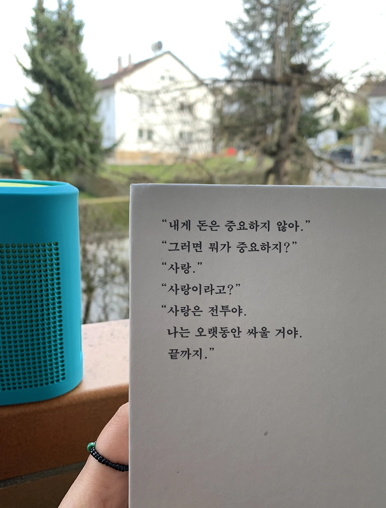 흔히들 말하는 남녀 간 사랑 말고도 신이 우리에게 주고자 했던 근원적인 그 무엇도 사랑이었기에 나도 그것을 마음의 중심에 품고 살아보고 싶다. 그것을 위해 끝까지 한번 싸워보고 싶다.