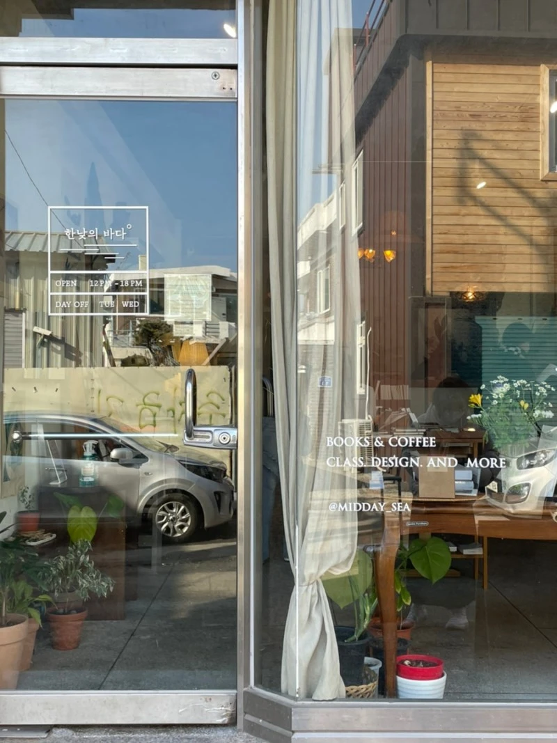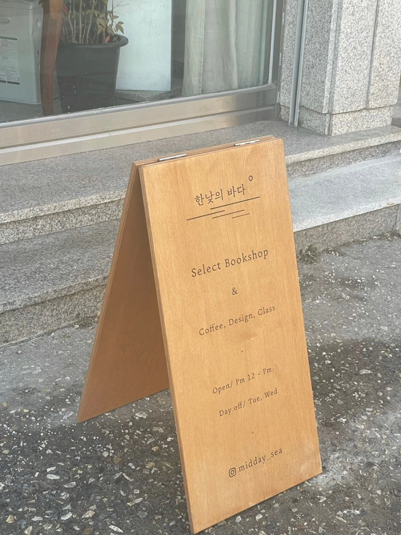 이전부터 그렇게 추천을 많이 받았던 <한낮의 바다>. 은주야 여기 꼭 가봐, 네가 정말 좋아할거야. 가야지, 가야지 했던 게 벌써 두 번째인데 웃기게도 가는 날마다 휴무였다. 겨우 올 수 있었던 책방. 이전에 제주도를 돌며 책방을 들렀던 기억도 생각나고, 무엇보다 주인분이 큐레이션 한 책들을 구경하는 맛이 있었다.