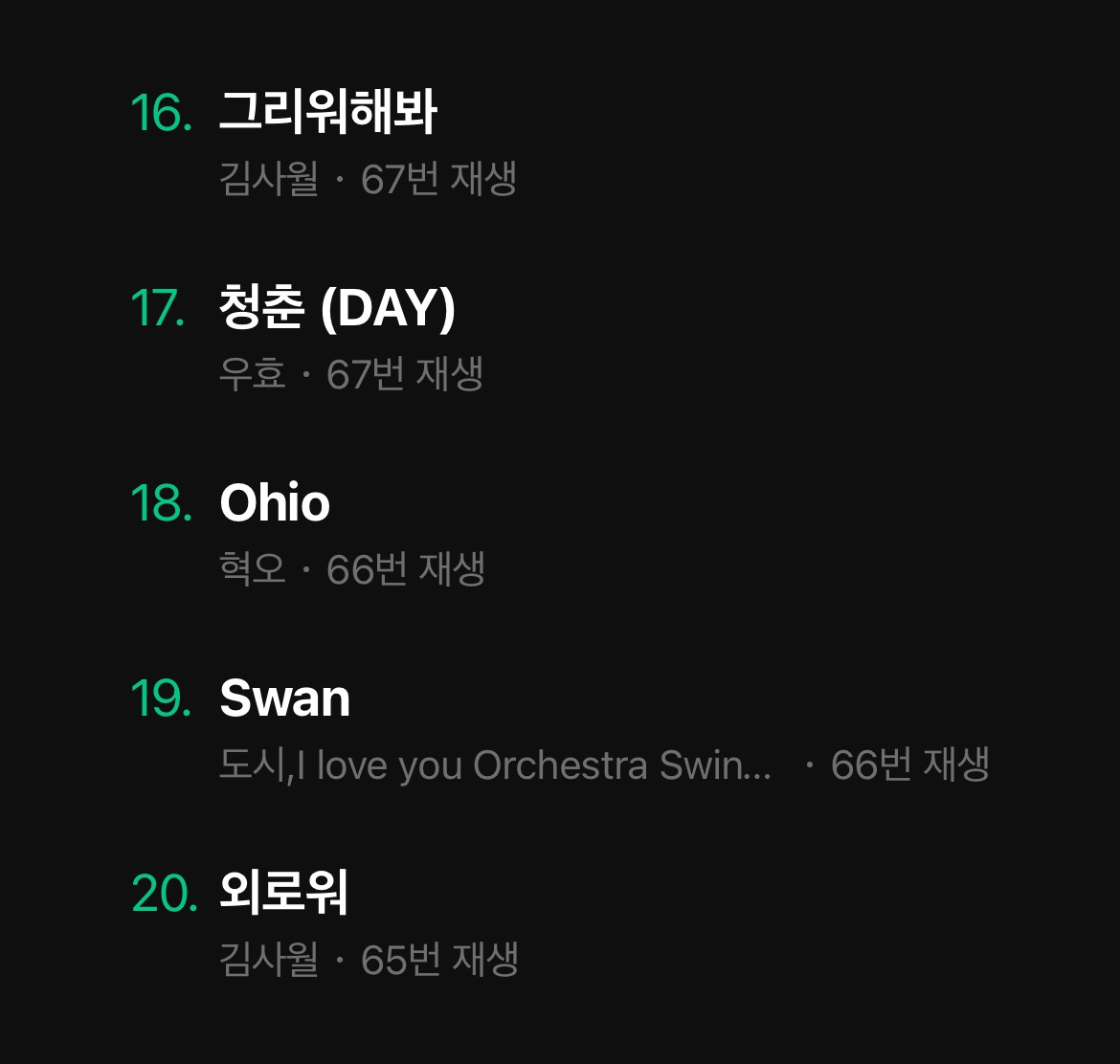 주로 락을 좋아했는데 선정된 플레이리스트를 보니 취향이 많이 바뀐 게 눈에 들어온다.