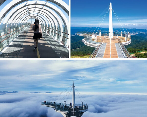 이곳에 있는 스카이워크를 통해 발왕산 주변 전망을 한눈에 모두 담을 수 있으며, 아침에 방문하게 되면 웅장한 운해까지도 볼 수 있는 여행지입니다. 또한 높은 고도를 스릴 있게 즐길 수 있는 투명한 발판 위에서 사진도 남겨보시길 추천드립니다.