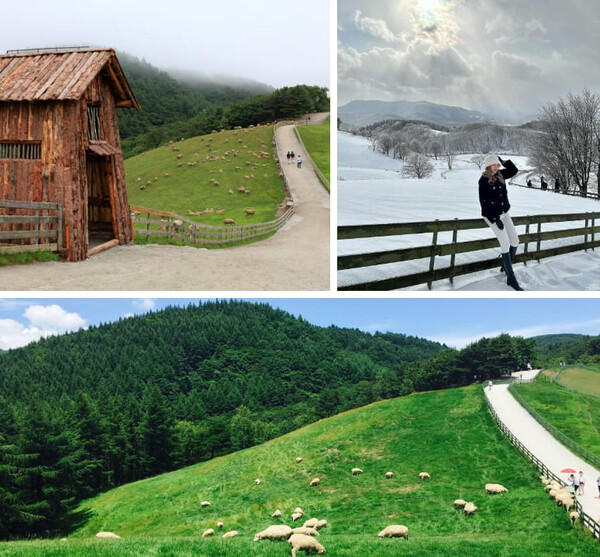 대관령 양 떼목장은 한국의 알프스라고 불릴 정도의 경치를 자랑하는데요. 넓은 들판 위에서 양 떼가 뛰어노는 모습을 보고 있노라면 힐링이 따로 없는 명소입니다.