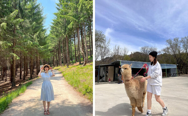 이곳은 '애니', '포레'로 나 누지며 말 그대로 알파카목장과 가문비 치유의 숲, 두 가지 테마의 명소가 조화롭게 펼쳐져 있는데요.