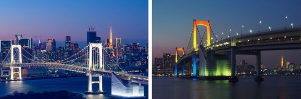 레인보우 브릿지는 도쿄만과 오다이바 섬을 있는 거대한 규모의 대교인데요. 낮에는 태양열을 축적하고 밤에는 그 에너지를 통해 조명을 비추며 더욱 아름다운 분위기를 선보이는 도쿄 가볼만한 곳입니다.