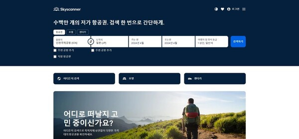 스카이스캐너는 전 세계 항공편 및 호텔 예약을 비교해 주는 영국 본사의 포털사이트인데요. 굳이 따지자면 항공권계의 구글과 같다고 할 수 있습니다. 때문에 많은 분들이 로그인을 굳이 하지 않고도 쉽게 이용할 수 있다는 장점을 가지고 있습니다.