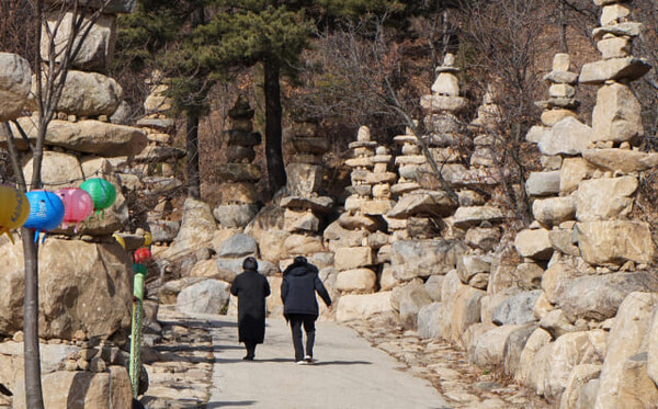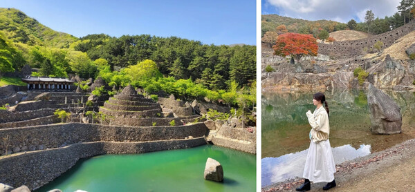 약 1,500여 개의 돌들을 쌓아 올려 조성된 이곳은, 주변의 숲들과 매우 조화롭게 펼쳐져 있어 이국적이면서 신기한 정취를 가득 느낄 수 있는데요. 특히 돌탑들 가운데에 있는 호수는 옥색을 띠며 더욱 신비로운 느낌을 자아냅니다.