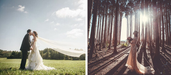 이곳에서 웨딩사진을 촬영하는 팁으로는 잔디언덕에서 숲을 배경으로 사진을 찍어도 좋고, 숲 안으로 들어가 나무들 사이로 들어오는 햇살을 조명삼아 역광 사진을 찍어도 매우 아름답게 나오는데요.