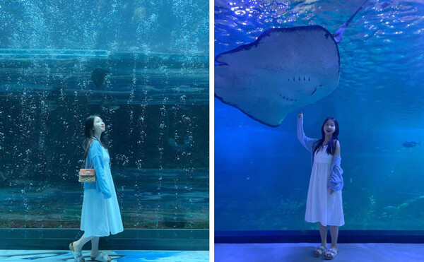 초대형 수조로 하여금 마치 바닷속에 들어와 있는 듯한 착각을 만들 정도로, 화려한 모습을 눈에 담을 수 있는데요.